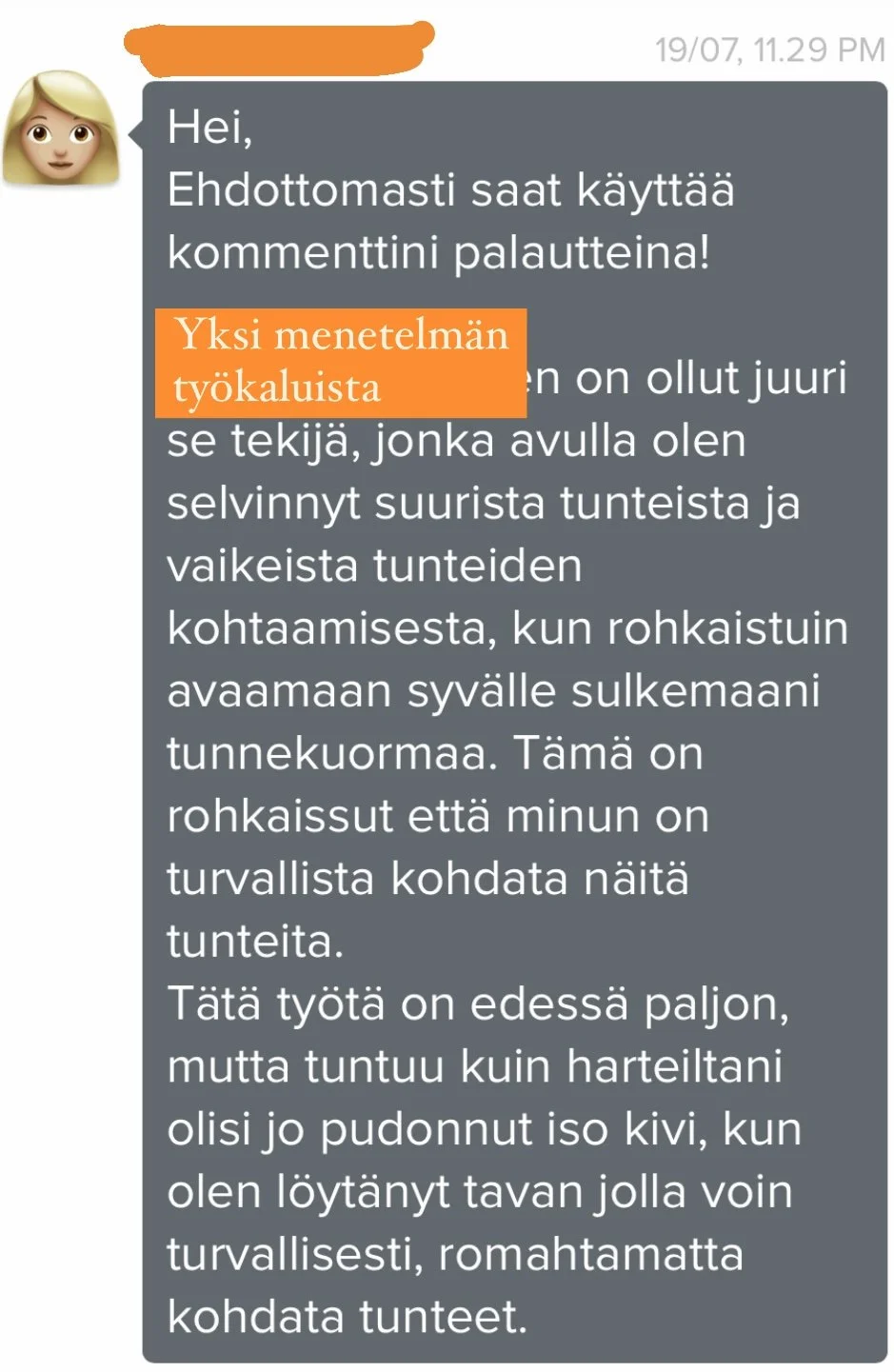 Osaan nyt kuunnella kehoani ja pysähtyä tunteiden äärelle.