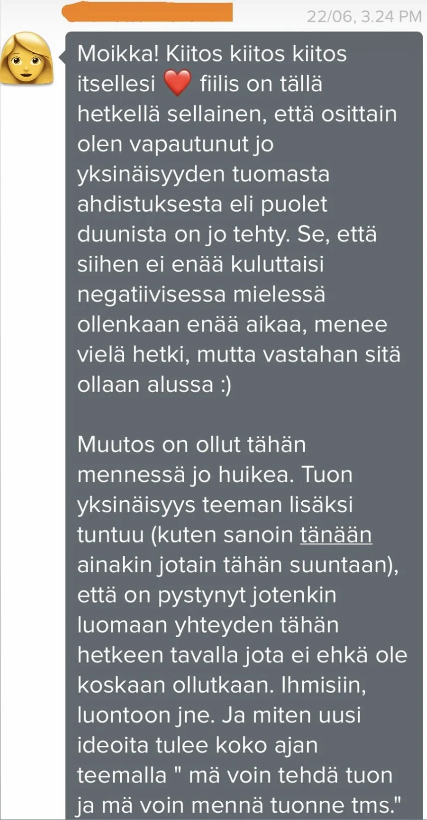 Asiakkaan viesti valmennuksen aikana, v. 2022.